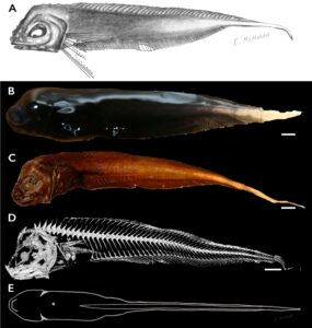 Eigenmannia wazowskii, holotype, 180.9 mm LEA (= length to end of anal-fin base). From: Uliam, M. I. M., H. P. A. Ribeiro and G. M. Dutra. 2025. Description of a new species of glass knifefish genus Eigenmannia (Gymnotiformes: Sternopygidae) from the rio Negro basin, Brazil. Neotropical Ichthyology 23 (3): e250004: 1-18.