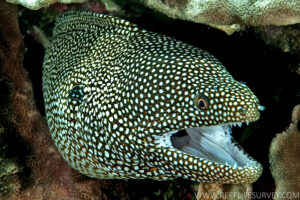 Guineafowl Moray Gymnothorax meleagris at Lord Howe Island, Australia. Photo by Ian V. Shaw / Reef Life Survey. Source: https://fishesofaustralia.net.au