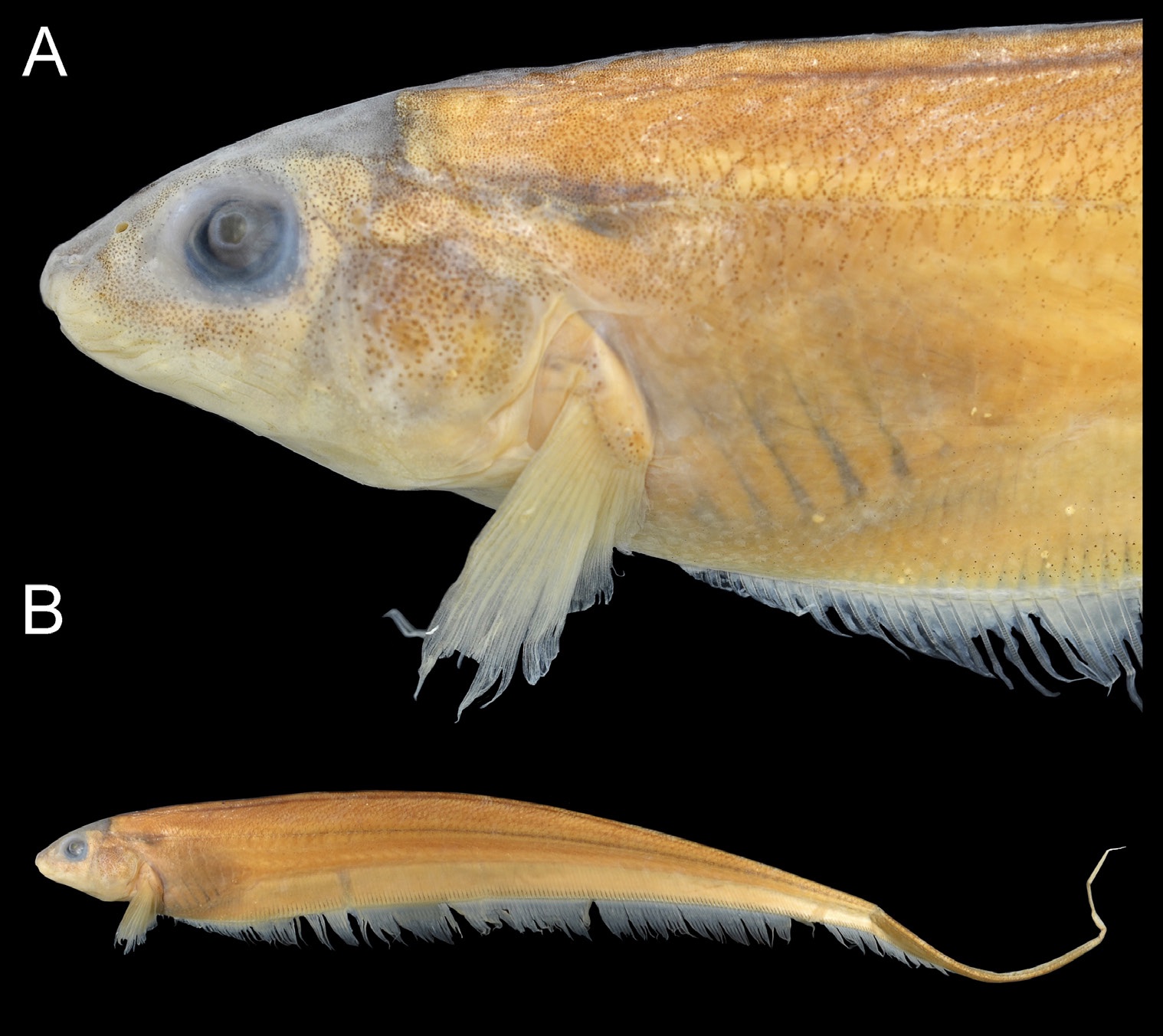 Preserved specimen of Opistognathus cryos, holotype, 65.1 mm SL. Photo by Y.-C. Hsu. From: Su, Y, and H.-C. Ho. 2024. A new species of the jawfish genus Opistognathus from Taiwan, northwestern Pacific Ocean (Perciformes, Opistognathidae). In: Ho, H.-C., B. Russell, Y. Hibino and M.-Y. Lee (Eds.) Biodiversity and taxonomy of fishes in Taiwan and adjacent waters. ZooKeys 1220: 165–174 https://doi.org/10.3897/zookeys.1220.123541