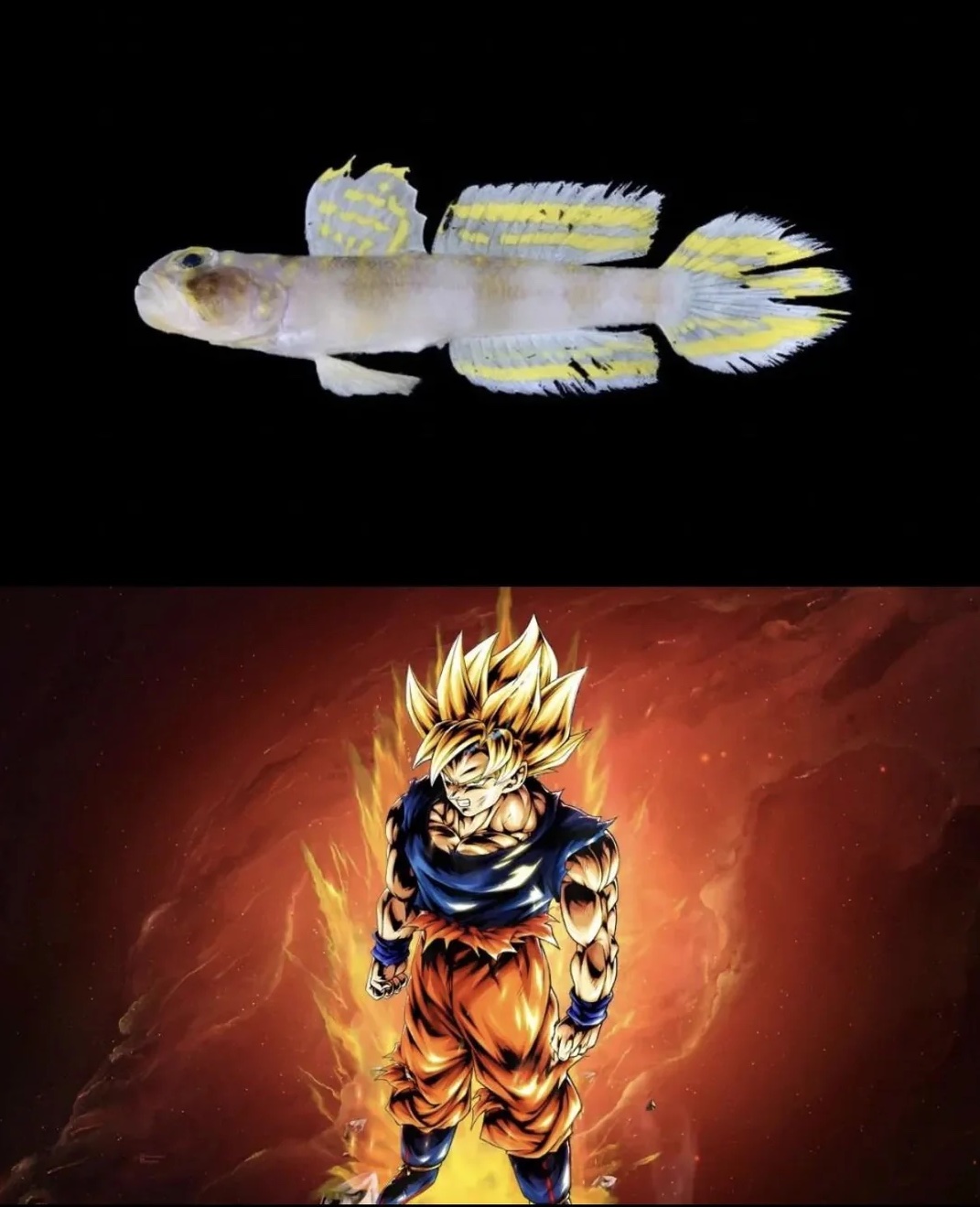 Because of its unique bright-yellow color, the goby is named after “Super Saiyan,” a fictional transformation from the “Dragon Ball” manga series, famous for its golden yellow hair and glowing aura.