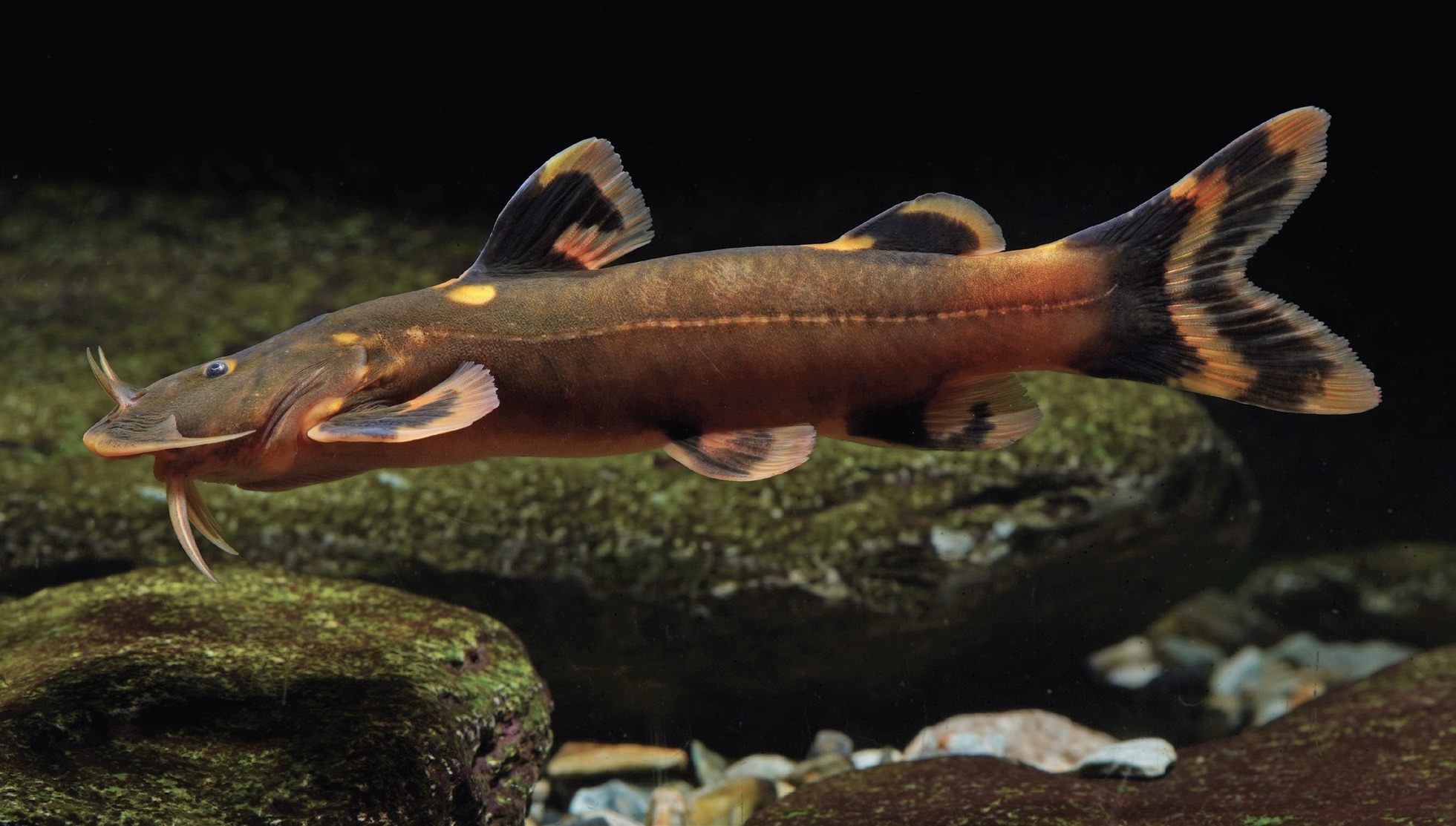 Living view of Glyptothorax pulcher, holotype, 83.5 mm SL. From: Zeng, Y.-Y., F. Lin, H.-F. Yang, X.-R. Pu, W.-S. Jiang and X.-Y. Chen. 2026. Glyptothorax pulcher (Siluriformes, Sisoridae), a new species from the upper Pearl River of Yunnan and Guangxi, southwest China. Zoosystematics and Evolution 102 (1): 17-26.