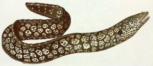 Muraena helena. From: Bloch, M. E. 1786. Naturgeschichte der ausländischen Fische. Berlin. v. 2: i-viii + 1-160, Pls. 145-180.